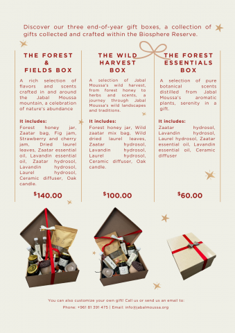 A selection of pure botanical scents distilled from Jabal Moussa’s aromatic plants, serenity in a gift.